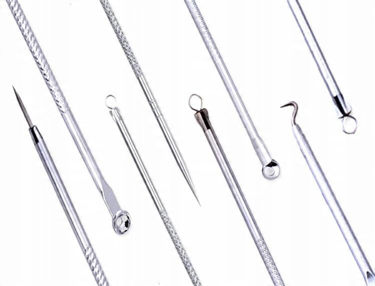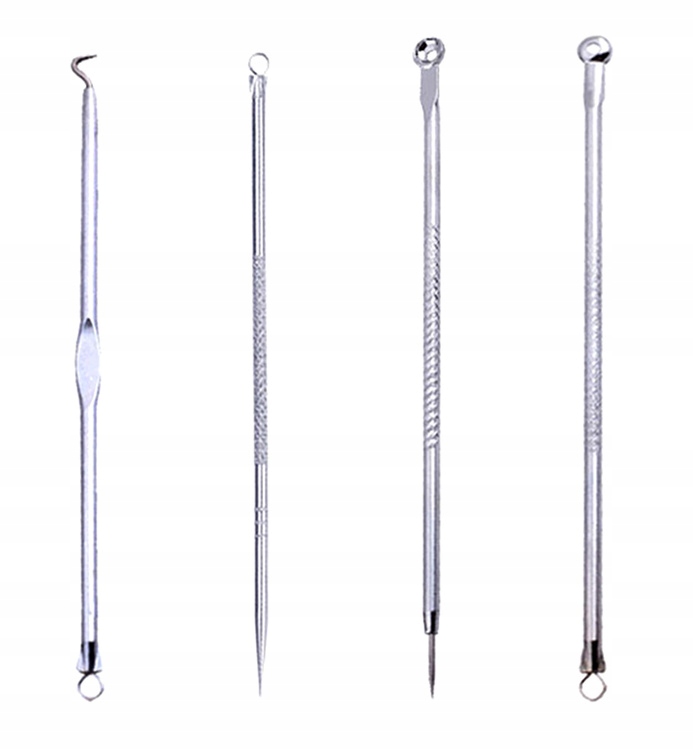 Набор чайных ложки для удаления углов, углов и других недостатков с помощью пирса и цикла. Шрамы и инфекции, которые могут быть результатом лечения, выполненных руками.