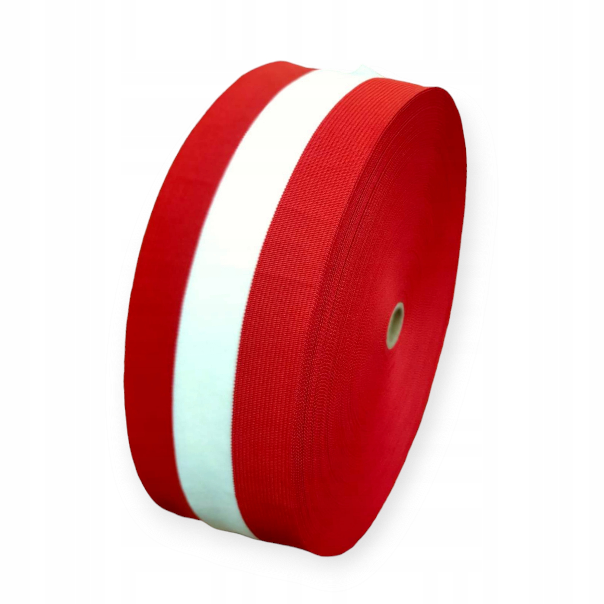 Текстильная предупреждающая лента. Белый и красный. Красный 100м
