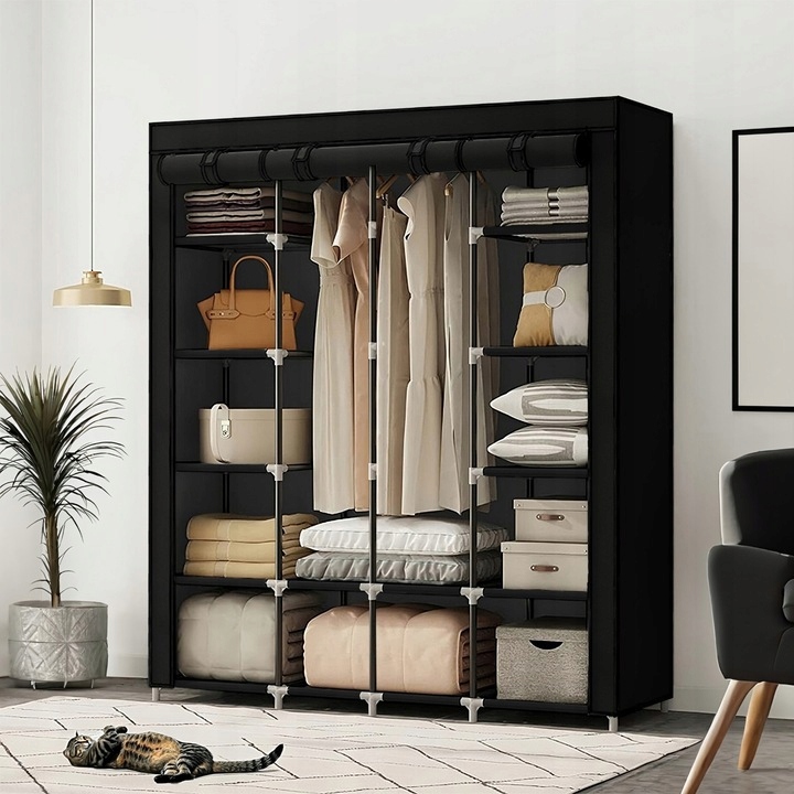 Шкаф построен на основе прочного металлического каркаса с качественными пластиковыми соединителями, что делает его прочным и быстрым в сборке - все зависит от вас. нужно несколько минут! Идеально подходит для переезда, путешествий или частой смены дома.