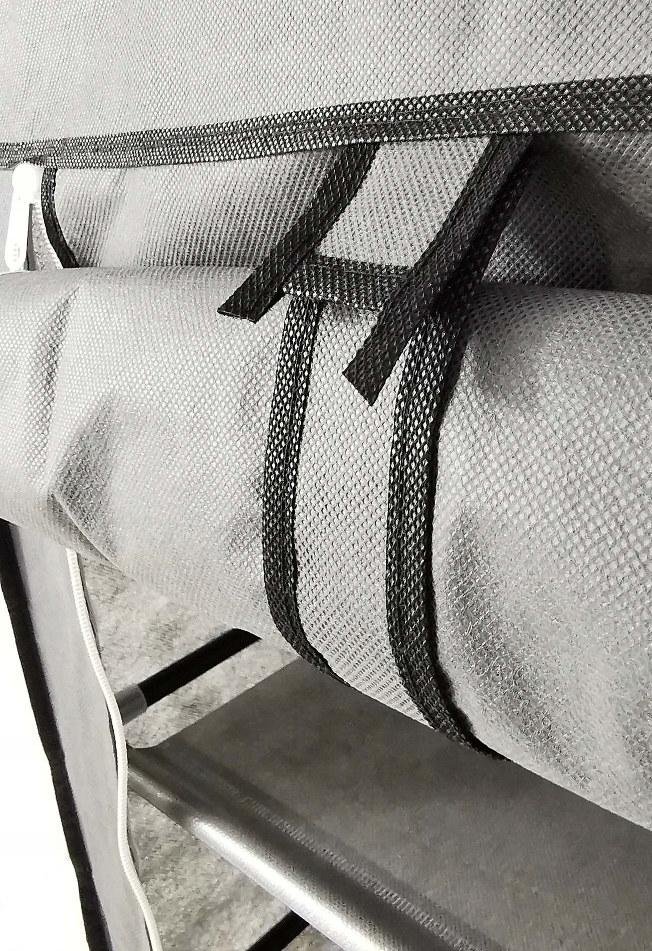 Дверная шторка, оснащенная липучкой и молнией, эффективно защищает содержимое от пыли и грязи. . Текстильный шкаф-купе выглядит стильно и вписывается в различные помещения, например, в спальню, коридор или гардеробную.