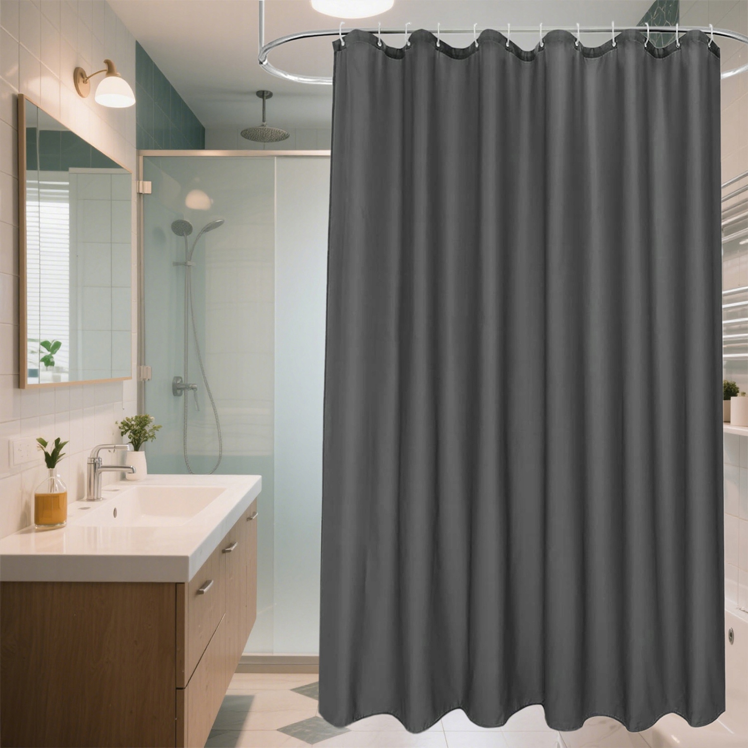 ТЕКСТИЛЬНАЯ ЗАНАВЕСКА ДЛЯ ДУША 100Х200СМ – ПРОТИВОСКОЛЬЗЯЩАЯ, ВОДОНЕПРОНИЦАЕМАЯ СЕРАЯ