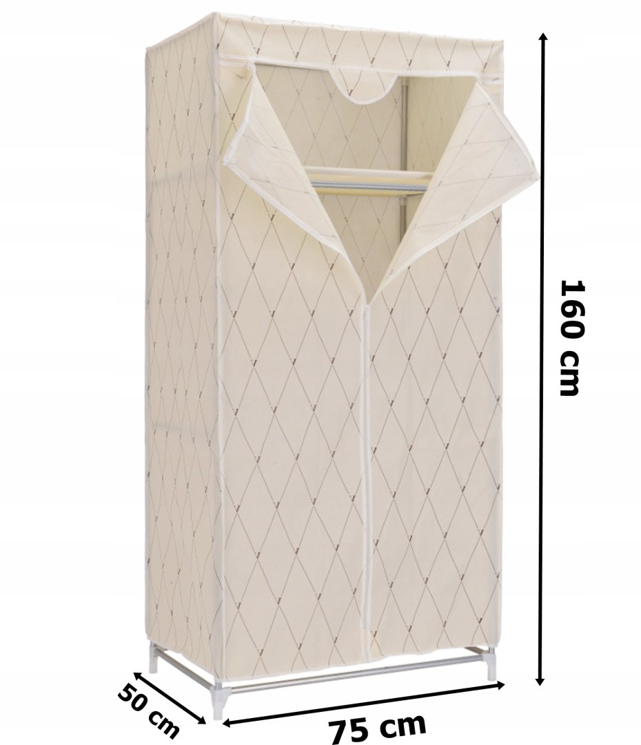 Шкаф изготовлен из стальных рам, образующих его каркас. Каркас покрыт дышащим, качественным материалом с нанесенным изображением. Ее легко содержать в чистоте, она практична, полка идеально подходит для хранения шапок, шарфов, перчаток или других мелочей. В основной части гардероба также есть возможность повесить одежду на вешалки. Легкая и прочная конструкция, ее можно складывать, переносить и перемещать в любое время.