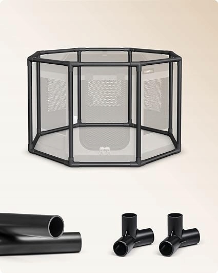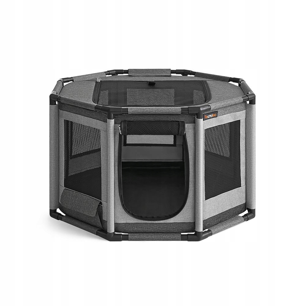 Прогулка Feandrea Puppy из ткани Оксфорд, манеж для щенков, восьмиугольный, клетка для собаки М, 72 х 72 х 43 см, каркас из трубы ПВХ, дышащая сетка, с боковым карманом, цвет темно-серый-светло-серый