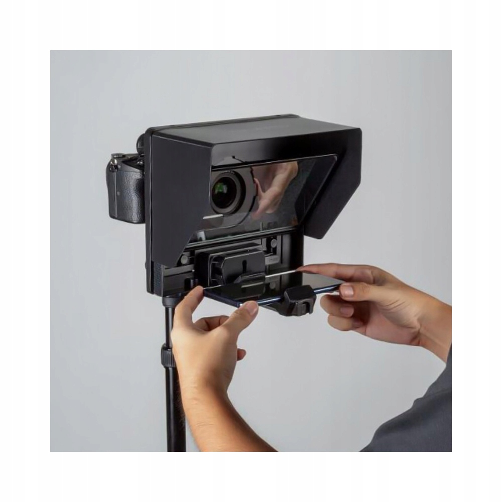 Прижимной держатель, входящий в комплект, предназначен для крепления смартфонов и планшетов шириной от 6,5 до 16,5 см. Пружинный замок и нескользящие накладки обеспечивают безопасность и стабильность. Небольшой вес суфлера означает, что его можно легко разместить прямо на объективе камеры. Для такой установки можно использовать один из восьми резьбовых переходников: 49, 52, 55, 58, 62, 67, 72 или 77 мм. Выбранный переходник следует накрутить на объектив так же, как и фотофильтр, а затем разместить на нем рамку-суфлер.