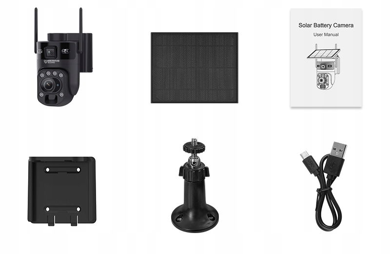 - Поворотная камера BERING GSM SOLAR цвета ЧЕРНЫЙ с держателем, встроенными аккумуляторами и солнечной панелью