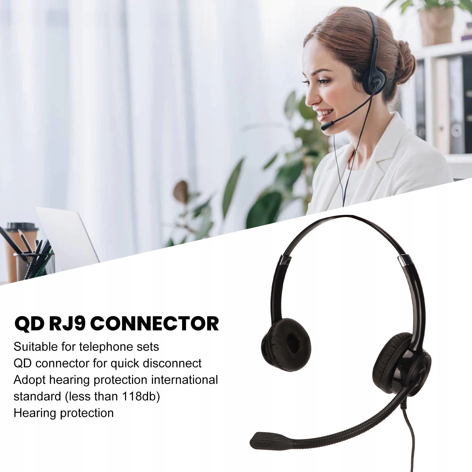 5. ИНТЕРФЕЙС QD RJ9: гарнитура колл-центра имеет интерфейс QD RJ9, подходящий для телефона, разъем QD для быстрого отключения. Примите международный стандарт защиты слуха (менее 118 дБ), чтобы сохранить слух.