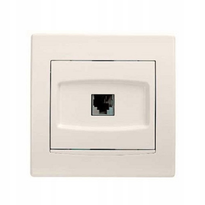Одиночная телефонная розетка R/11, предназначенная для скрытого монтажа. Изделие выполнено из кремового пластика, с внешней рамкой.