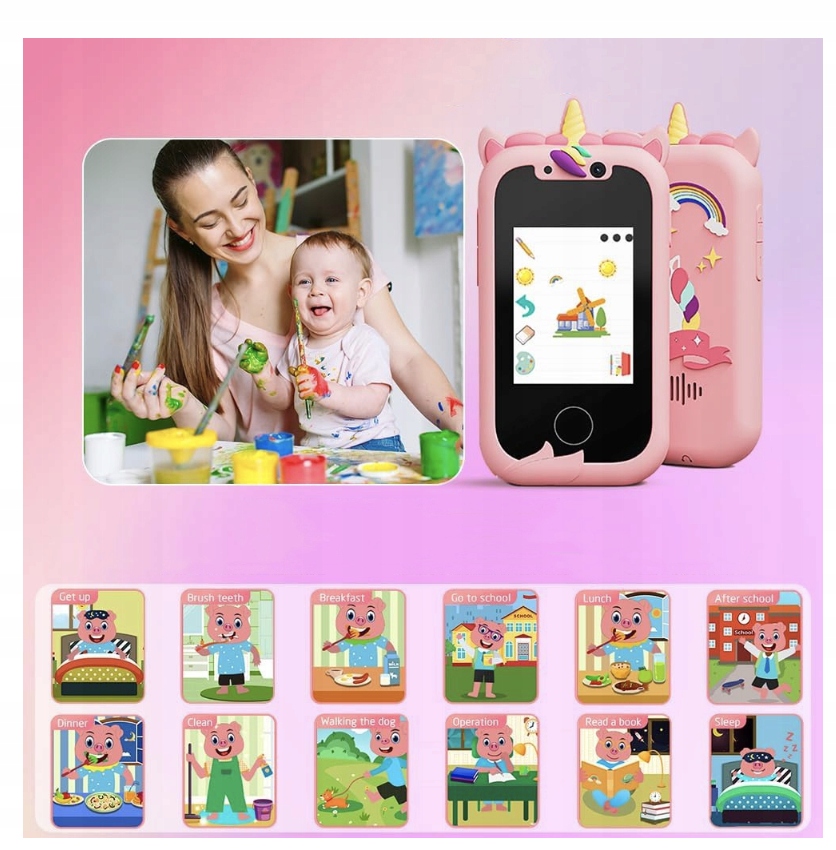 Телефонный звонок с камерой и играми для детей с единорогом для девочек