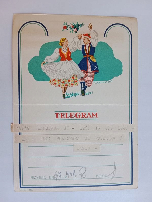 TELEGRAM ВАРШАВА JASŁO KACZMARCZYK 1067 D1