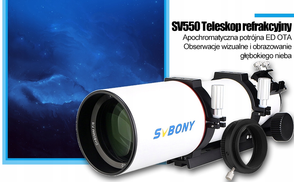 SVBony SV550 APO рефракторный телескоп, сфокусировка с двойной скоростью, с CAA, 80F6, ED OTA