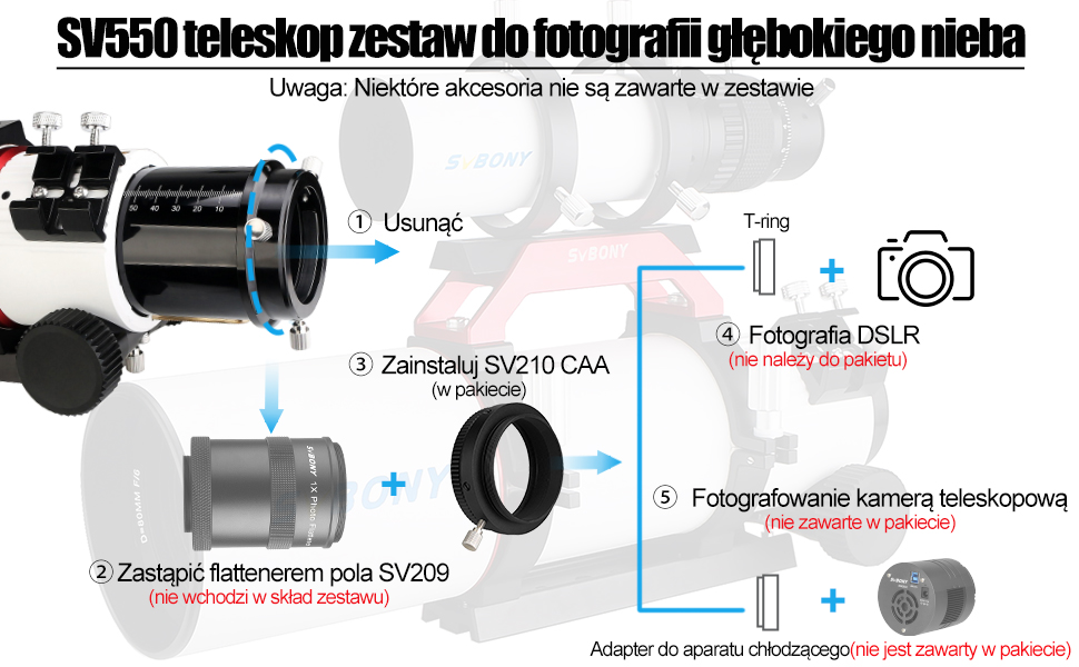 Заказывая «SVBony SV550 APO рефракторный телескоп, сфокусировка с двойной скоростью, с CAA, 80F6, ED OTA» данный товар из каталога «Телескопы» вы можете быть уверены, что после оформления заказа, доставки в Украину, вы получите именно то, что заказывали, в оговоренные сроки и европейского качества.