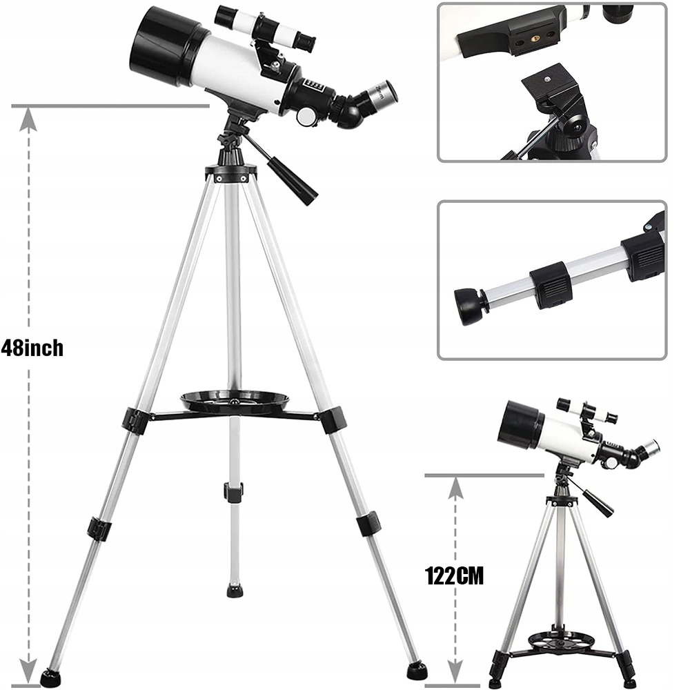 - ✔️ Этот дорожный телескоп 70AZ представляет собой удобный в использовании телескоп-рефрактор с фокусным расстоянием 400 мм, апертурой 70 мм и полностью покрытым оптическим стеклом. с покрытием с высоким светопропусканием обеспечивает четкое изображение, увеличивая яркость небесных объектов, обеспечивая 99% общего светопропускания и защищая глаза