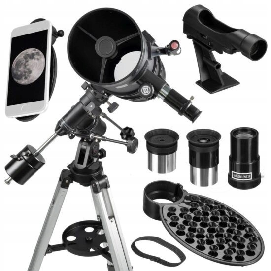Телескоп также имеет жесткую экваториальную монтировку, позволяющую каждому пользователю относительно легко и точно управлять телескопом.