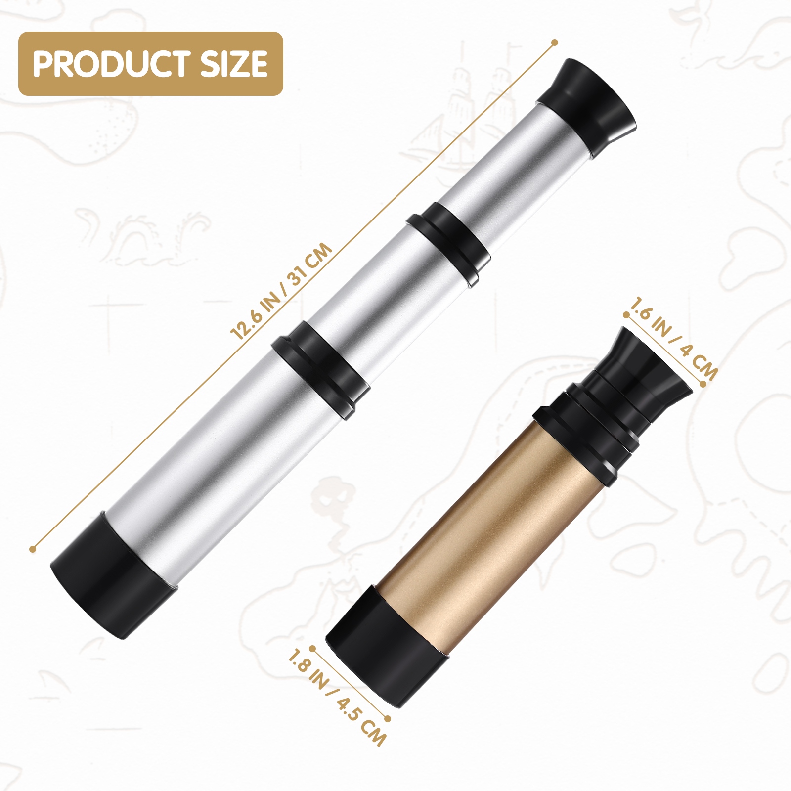 Это профессиональный портативный игрушечный телескоп, разработанный для простоты использования и который поможет вам увидеть сцену более реалистично. Будет обеспечен более яркий и четкий обзор, дети смогут использовать телескоп для игр или изучения знаний, а также это станет хорошим реквизитом для пиратской тематической вечеринки.