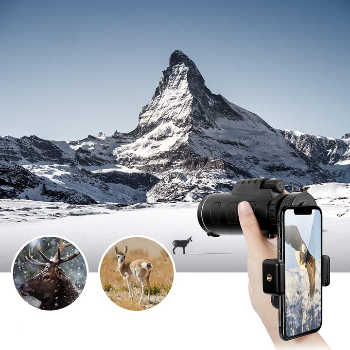 Карманный телескоп с креплением для мобильного телефона идеально подойдет для времяпровождения на природе, путешествий, наблюдения за птицами и во многих других ситуациях.