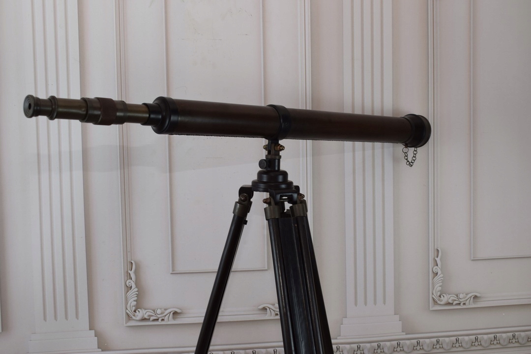 Здравствуйте, сегодня я хотел бы предложить вам чрезвычайно красивый латунный телескоп на складной деревянной подставке, максимальной высоте 160 см после складывания 80 см.