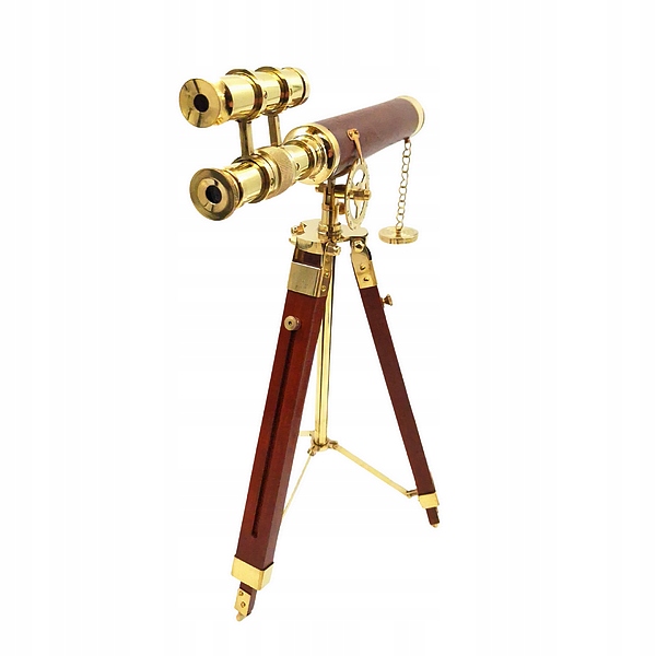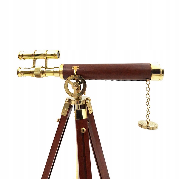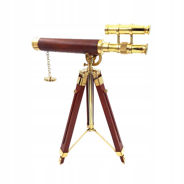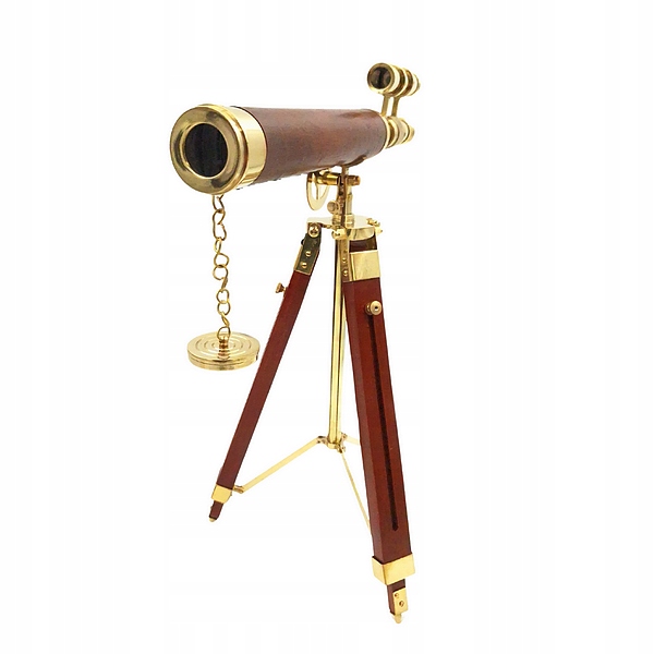 ТЕЛЕСКОП, ЛАТУНЬ, ШКІРА, НА ДЕРЕВ'ЯНОМУ РОЗШИРНОМУ ШТАТИВІ, КОЛОНІАЛЬНИЙ