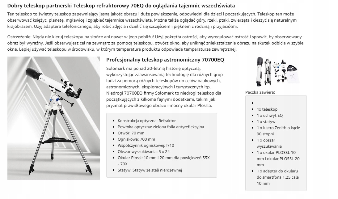 Заказывая «Телескоп Solomark B07M5S8B5X 700 мм» данный товар из каталога «Телескопы» вы можете быть уверены, что после оформления заказа, доставки в Украину, вы получите именно то, что заказывали, в оговоренные сроки и европейского качества.