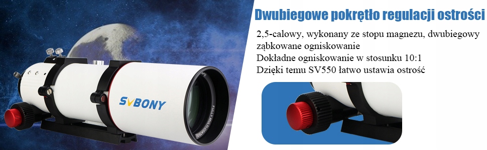 В 2-дюймовом фокусировочном гнезде SV503 имеется 2,5-дюймовое фокусировочное гнездо из магниевого сплава с быстрофиксирующимся зубцом для эффективной светосилы. Технология ЧПУ, более удобная в использовании.