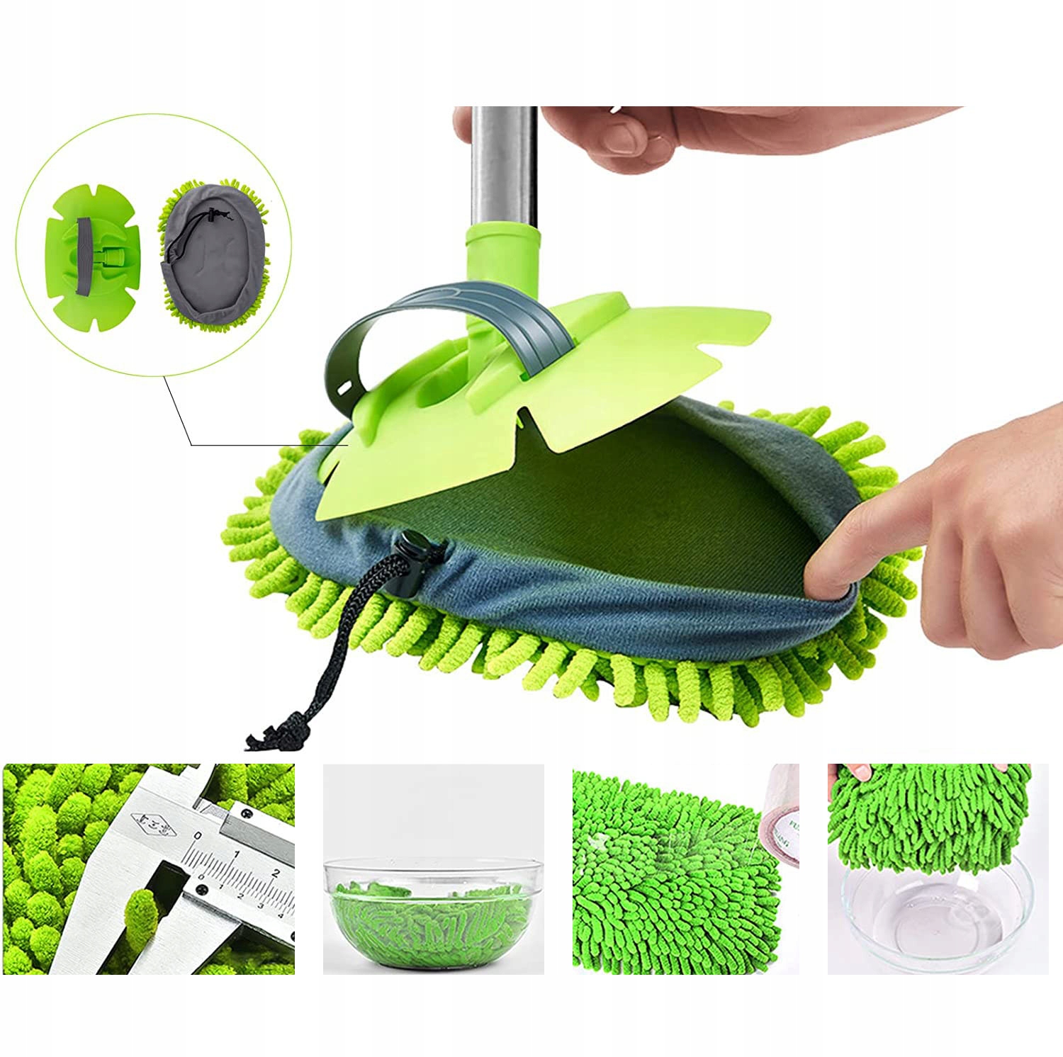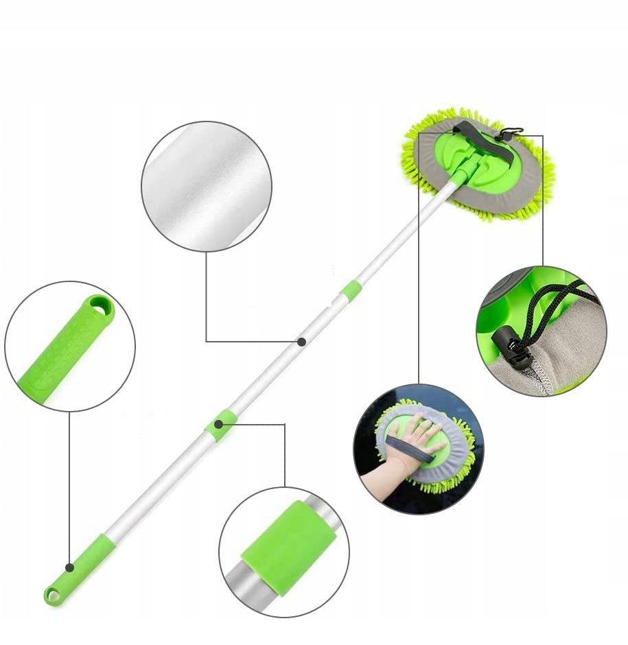 💦- На чистящей головке швабры имеется полоска. Ручку можно легко снять, а насадку можно использовать в качестве чистящей перчатки для чистки салона вашего автомобиля.