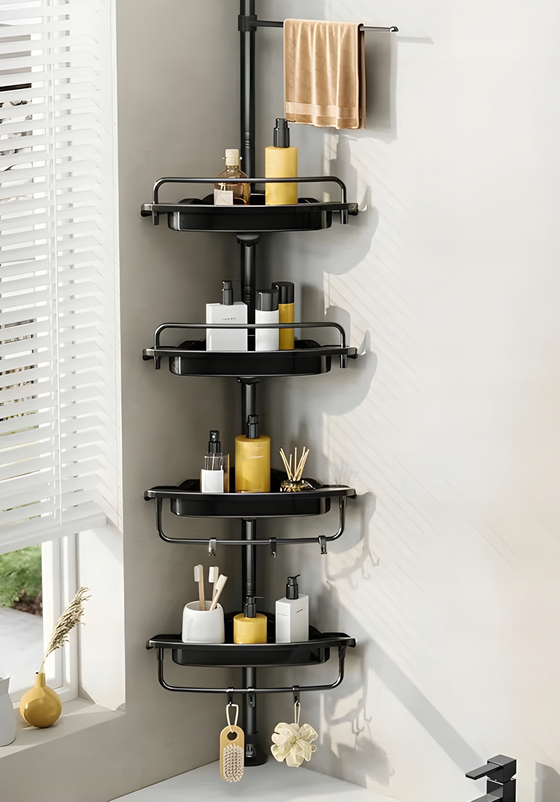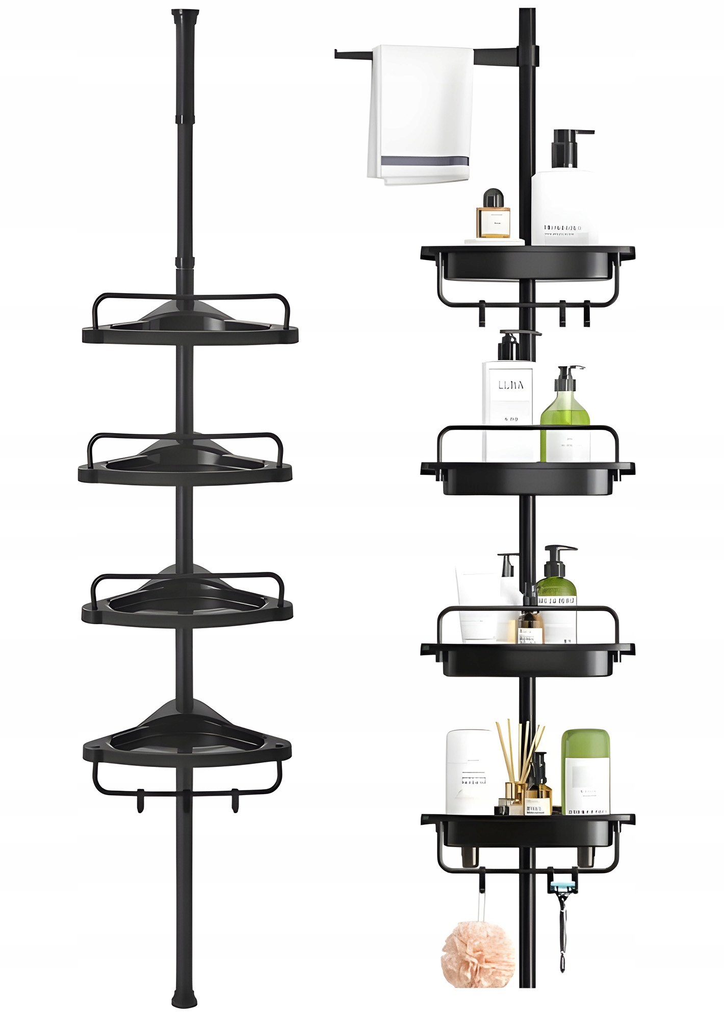 ТЕЛЕСКОПИЧЕСКАЯ 4-ПОЛОЖИТЕЛЬНАЯ УГЛОВАЯ ПОЛКА ДЛЯ ВАННОЙ, РЕГУЛИРУЕМАЯ ДЛЯ ДУША, ЧЕРНАЯ