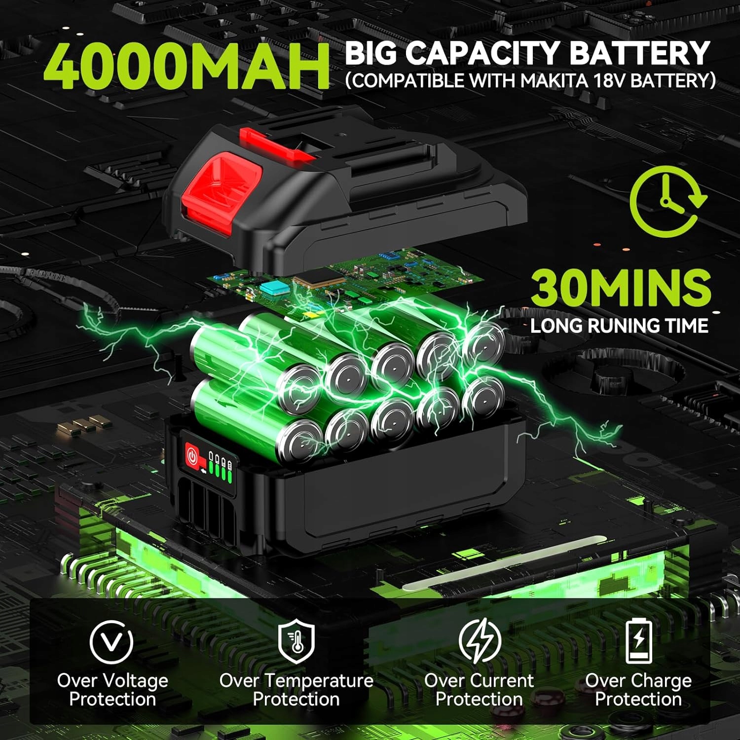 - [Удобство беспроводной связи] Аккумуляторная высоторезная пила 2-в-1 работает от аккумулятора. для удобства беспроводная связь, что облегчает работу и перемещение. Он поставляется с двумя аккумуляторами емкостью 4,0 Ач для использования в любом месте без источника питания, подходит для использования в помещении и на открытом воздухе.
