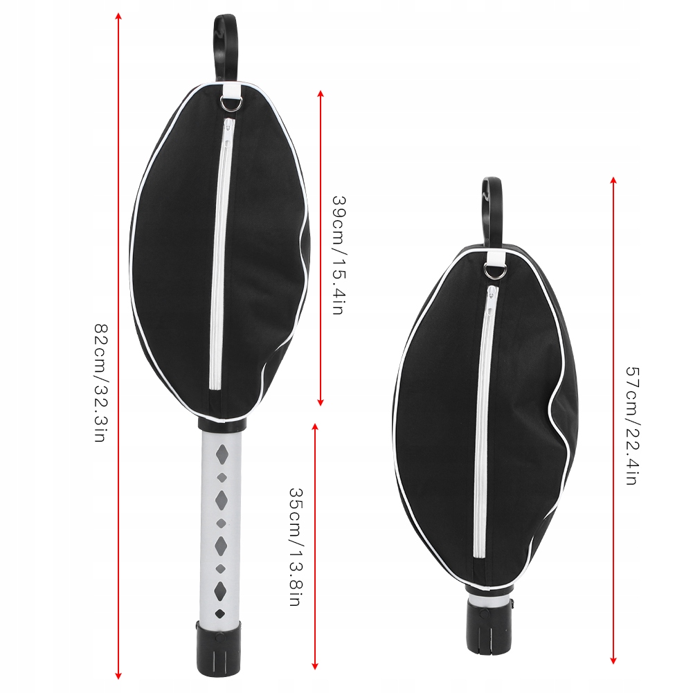 Длина в сложенном виде: около 57 см/. Размер нейлоновой сумки 22,4 дюйма: около 39 см/15,4 дюйма. Размер алюминиевой трубки: около 35 см/13,8 дюйма.