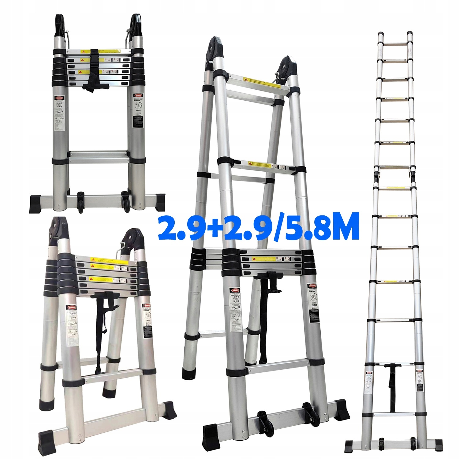 2) Алюминиевая телескопическая лестница A-Frame Class Premium Class с лучшим нагрузкой, твердым и устойчивым к износу. Усиленный нейлоновым волокном для повышения грузоподъемности, стабильности, сопротивления старению и продления срока службы.