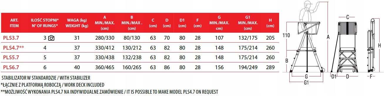 - Мы производим модели с дополнительными телескопическими боковыми стабилизаторами (PLS3.7, PLS5.7 и PLS6.7).