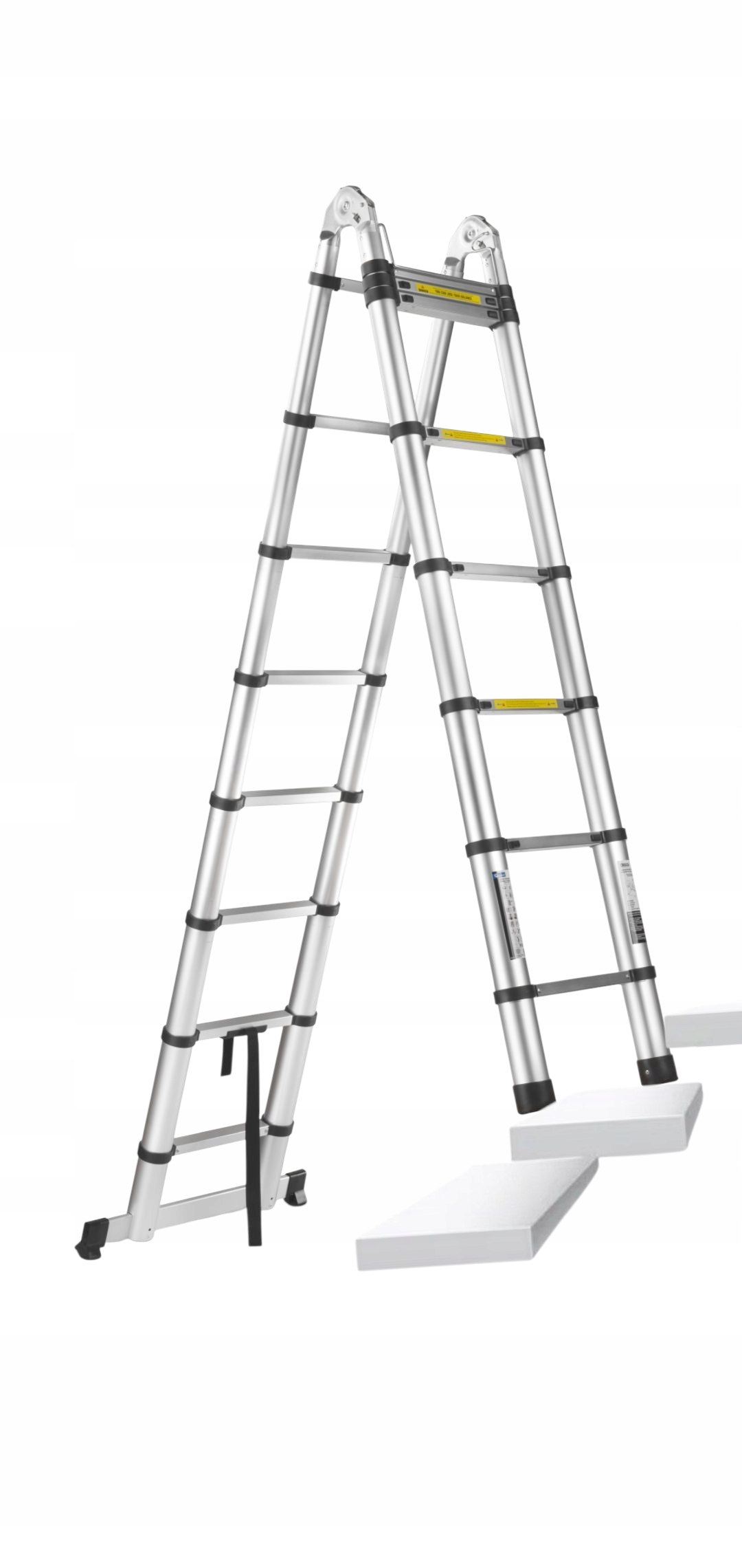 Фантастическая алюминиевая лестница, которую очень легко раскладывать и складывать. Его можно разместить на лестнице. в форме буквы А, а также под углом 90 градусов и использоваться в качестве рабочей платформы.