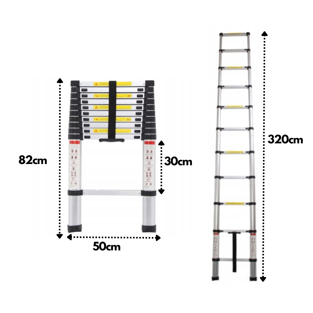 ТЕЛЕСКОПІЧНА ДРАБИНА від 1 м до 3,2 м АЛЮМІНІЄВА РОЗКЛАДНА СКЛАДНА