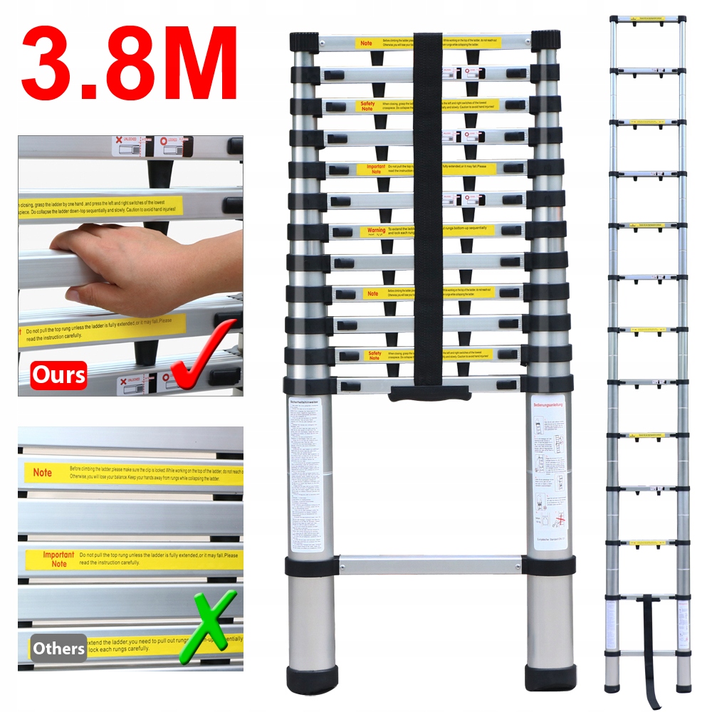 Телескопическая лестница не является промышленной лестницей. Применяется для частного использования или легких монтажных работ.