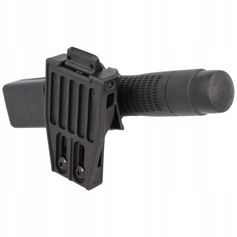 UBC-05 - (Quick Change System) универсальное, надеваемое на ремень крепление - позволяет быстро заменить держатель дубинки на другой держатель с поворотным механизмом. Крепление остается на ремне - нужно только выбрать другую кобуру и прикрепите его. Благодаря высокой гибкости системы пользователь может заменить оборудование на то, что ему необходимо в данный момент. Кобуру для телескопической дубинки можно заменить подсумком для магазинов или чехлом для фонаря. Крепление UBC-05 подходит для большинства ремней шириной 32-50 мм, а после снятия регулировки с держателя и до 60 мм (полицейский/дежурный ремень). Чтобы оборудование не перемещалось по ремню, например, во время бега, крепление оснащено двумя регулировочными винтами, фиксирующими крепление в необходимом месте на ремне.