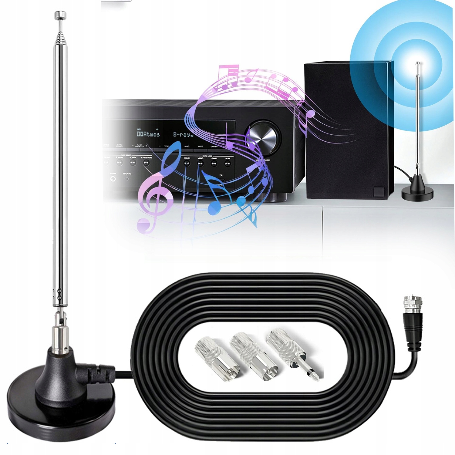 ТЕЛЕСКОПИЧЕСКАЯ РАДИОАНТЕННА FM-АНТЕННА С 3 АДАПТЕРАМИ ДЛЯ DAB 75 ОМ