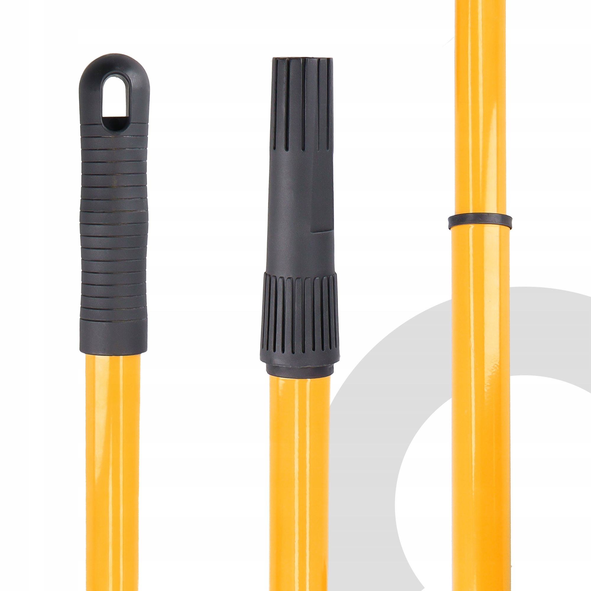 Телескопическая штанга отличается прочной конструкцией, состоящей из металлической трубки, пластиковой насадки и ручки, что обеспечивает долговечность и удобство использования.