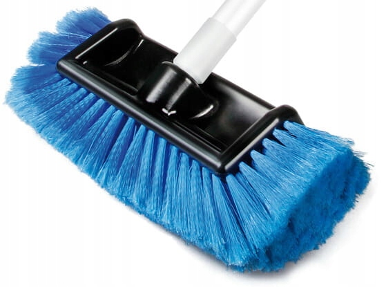 Большая прочная щетка для мытья больших поверхностей, автобусов и грузовиков. Имеет три плоскости очистки, систему подачи воды и плотную щетину.