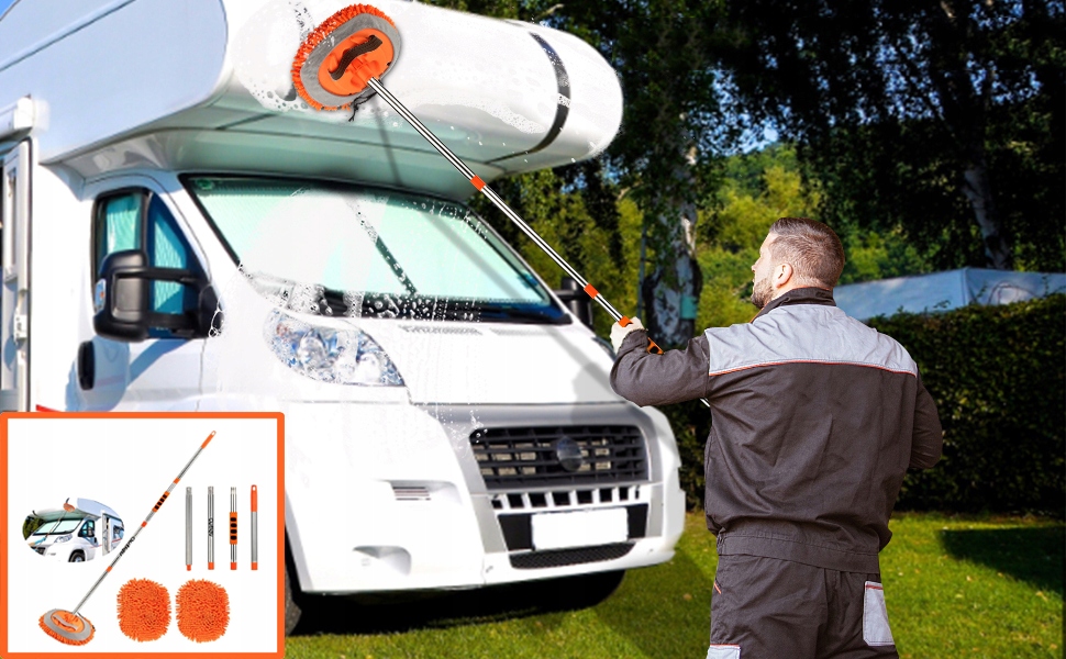 🫧 Универсальная щетка для автомойки идеально подходит для мытья, сушка, вощение, чистка пылесосом и полировка автомобилей, внедорожников, легковых автомобилей, грузовиков, автобусов, грузовиков и жилых прицепов.