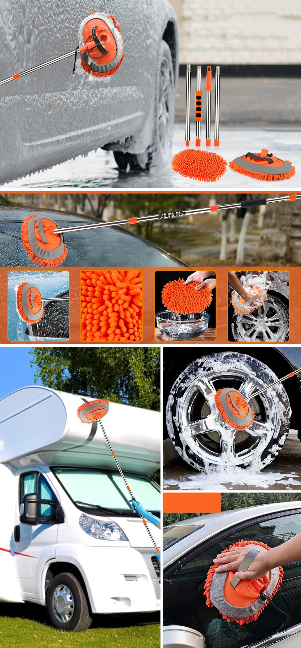 🧽 Телескопическая конструкция и регулируемая на 180 градусов насадка швабры повышают гибкость при мытье автомобиля и позволяют легко выполнить полную очистку.