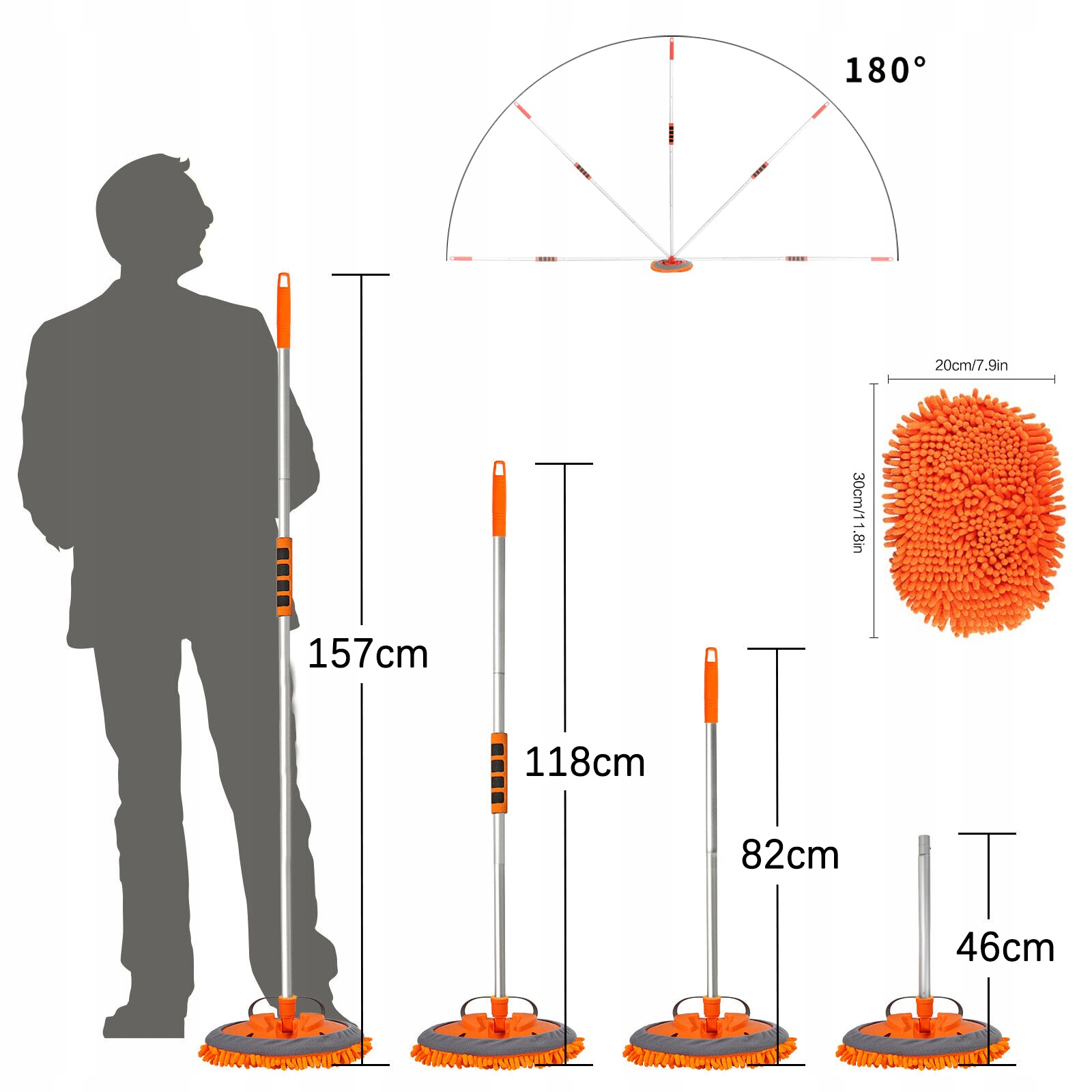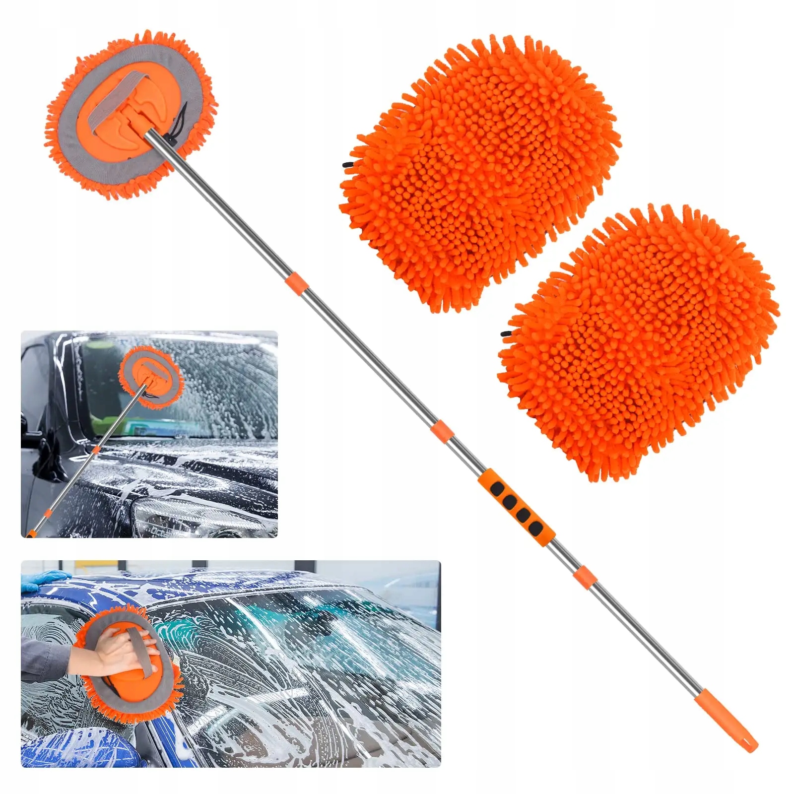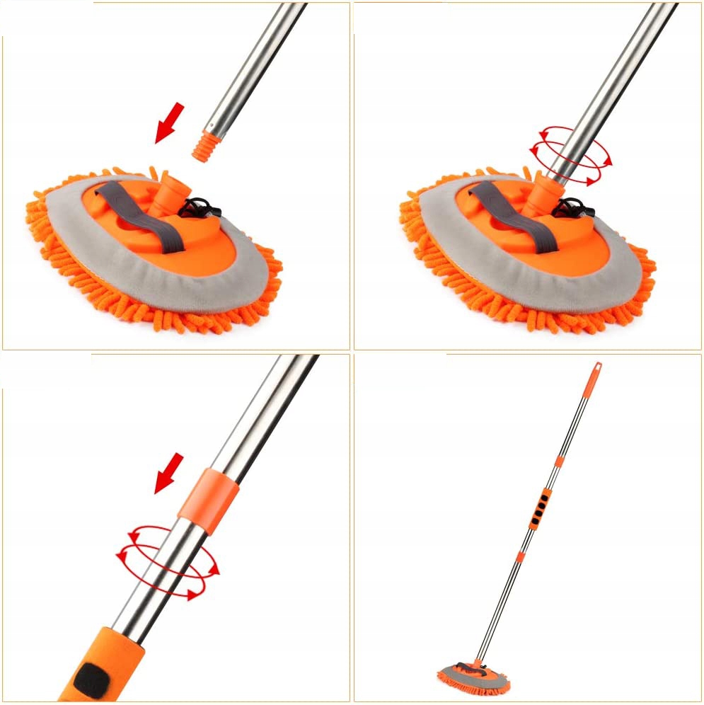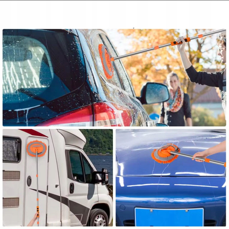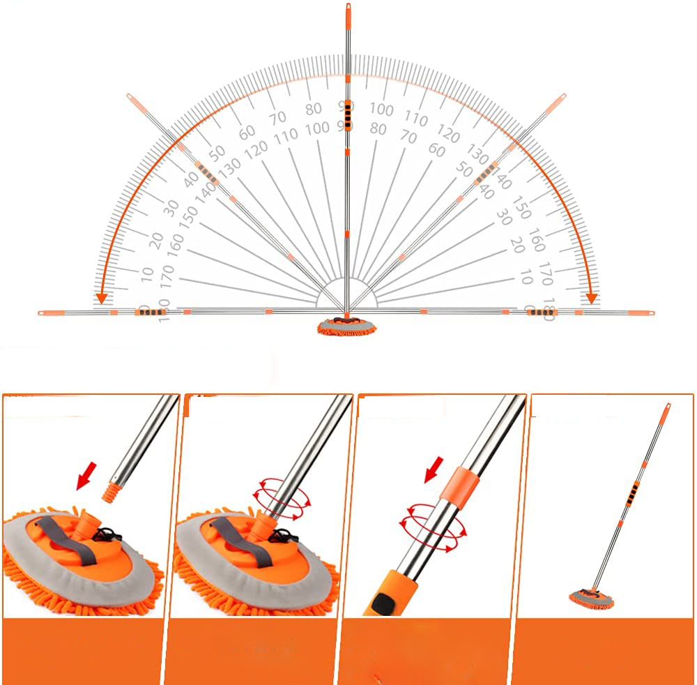 💦Сверхдлинная щетка для автомойки длиной 157 см легко достанет до крыши автомобиля и других более высоких мест. Регулируемая на 180 градусов насадка швабры дает вам больше гибкости при мытье автомобиля и гарантирует, что вы сможете легко выполнить полную очистку.