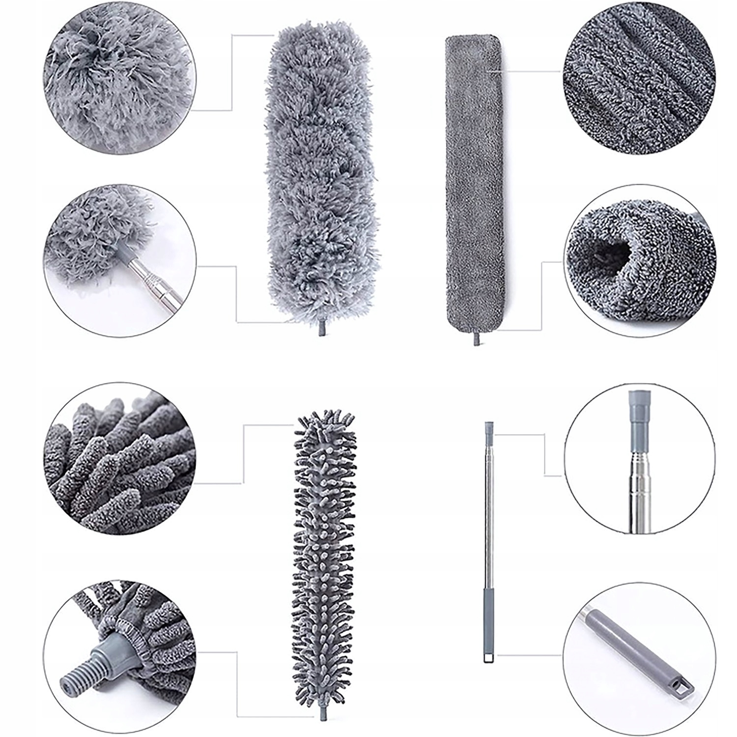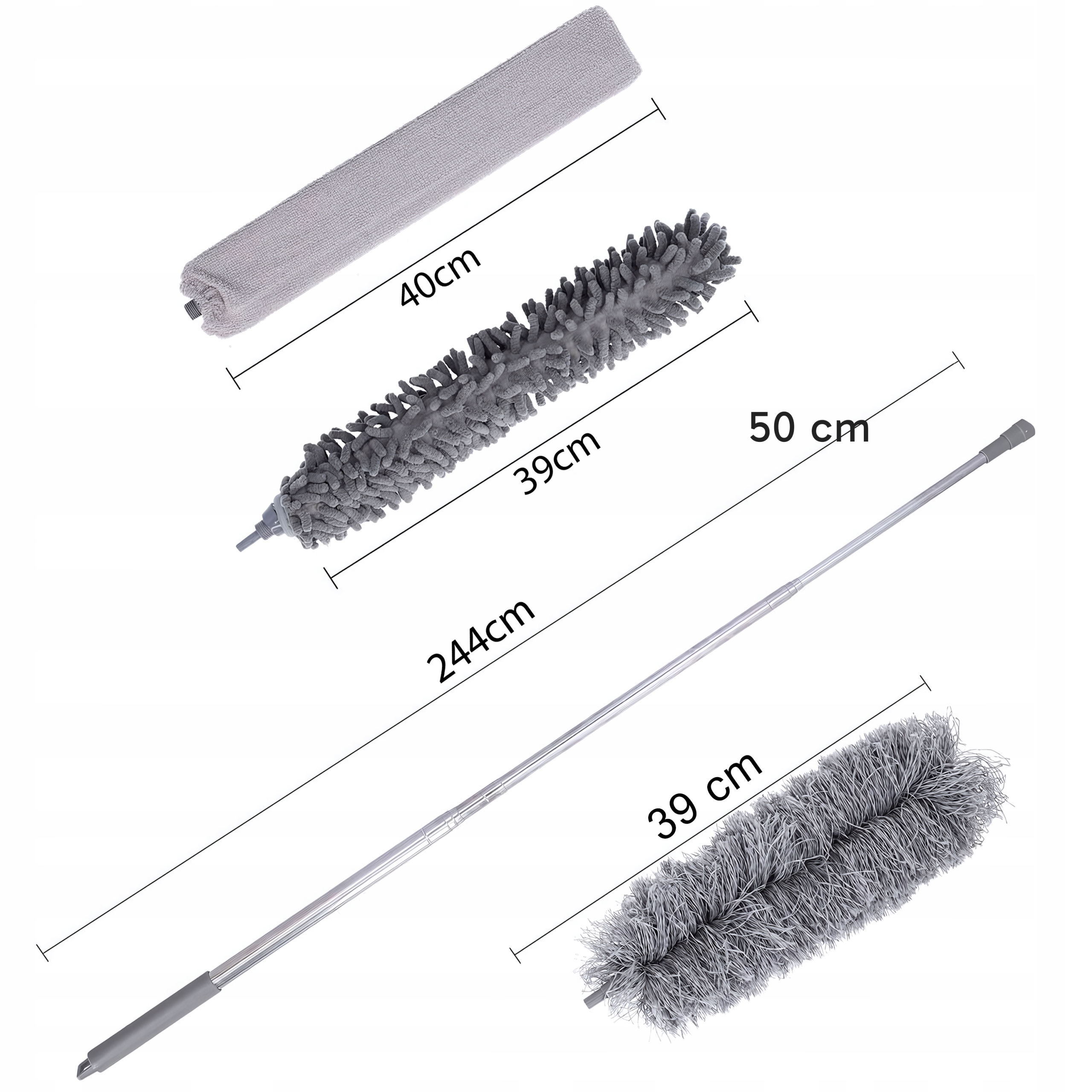 ТЕЛЕСКОПИЧЕСКАЯ ЩЕТКА ДЛЯ ПЫЛИ ДЛИННАЯ ЩЕТКА 280 СМ + 3 СМЕННЫХ НАКОНЕЧНИКА