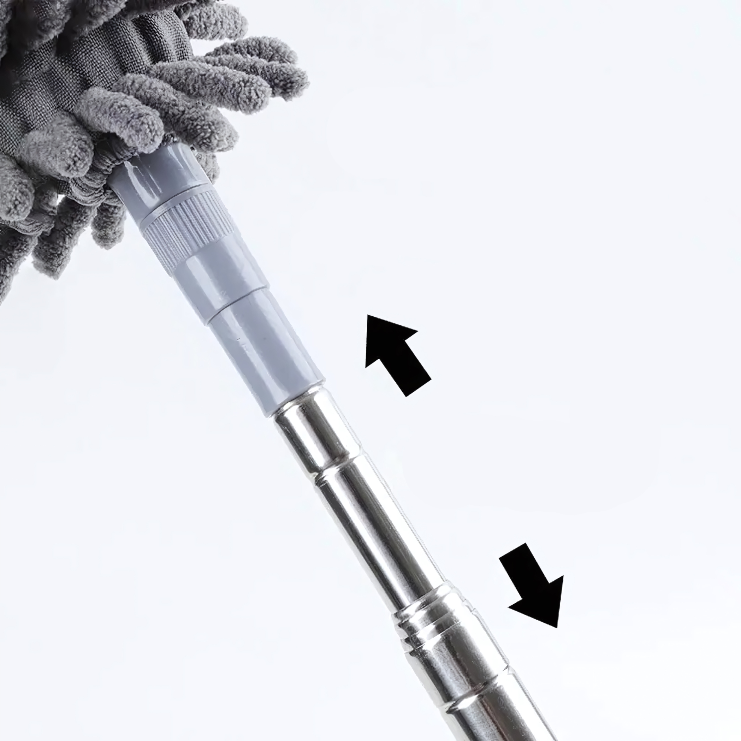 Щетка с телескопической металлической ручкой позволяет регулировать длину, что позволяетлегко чистить высокие места, например люстры или карнизы. Кроме того, матовый силикон на конце ручки предотвращает выскальзывание инструмента из рук, обеспечивая комфорт и безопасность использования.
