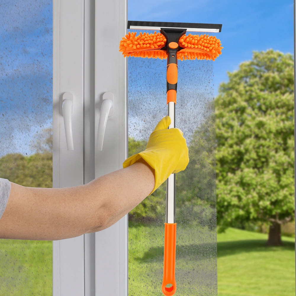 Сочетая резиновый скребок и ткань с гибкой головкой, этот инструмент обеспечивает идеальную, индивидуальную очистку. В комплект поставки входят 2 сменные салфетки для окон разных размеров, которые эффективно чистят и чистят высокие и низкие окна.