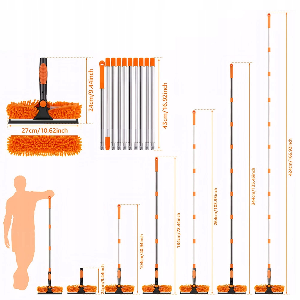 Эта утолщенная удлинительная штанга оснащена 10 съемными штангами для уменьшения нагрузки на руки. и облегчить работу. Добавляя или удаляя палки, вы можете контролировать длину до 424 см, что позволяет убирать 20 футов без лестницы или посторонней помощи.