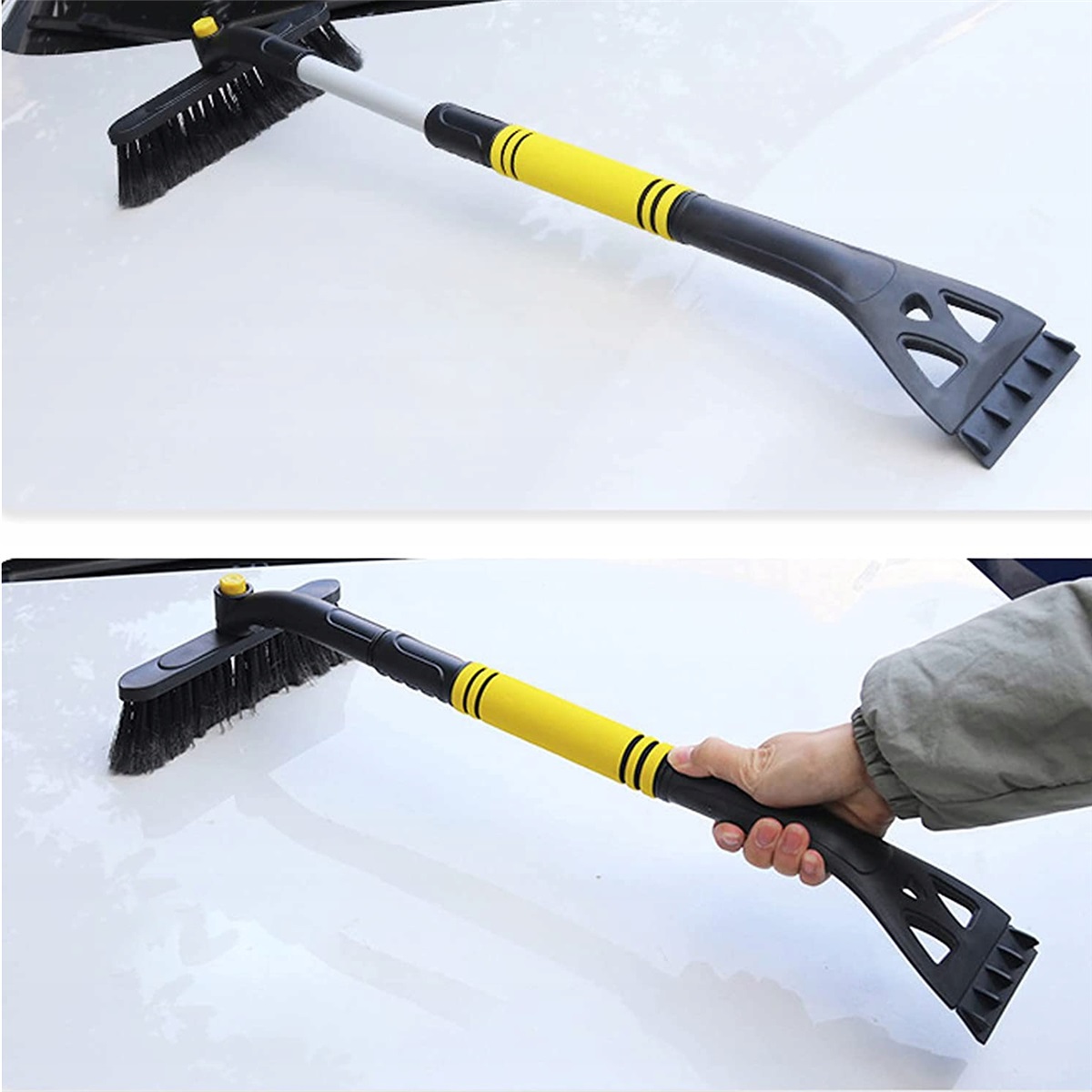 Три в одном, удобное хранение: Легко разбирается на три отдельные части (насадка щетки, скребок и телескопическая ручка). Компактное хранилище экономит место, удобно транспортировать и идеально помещается в багажник.