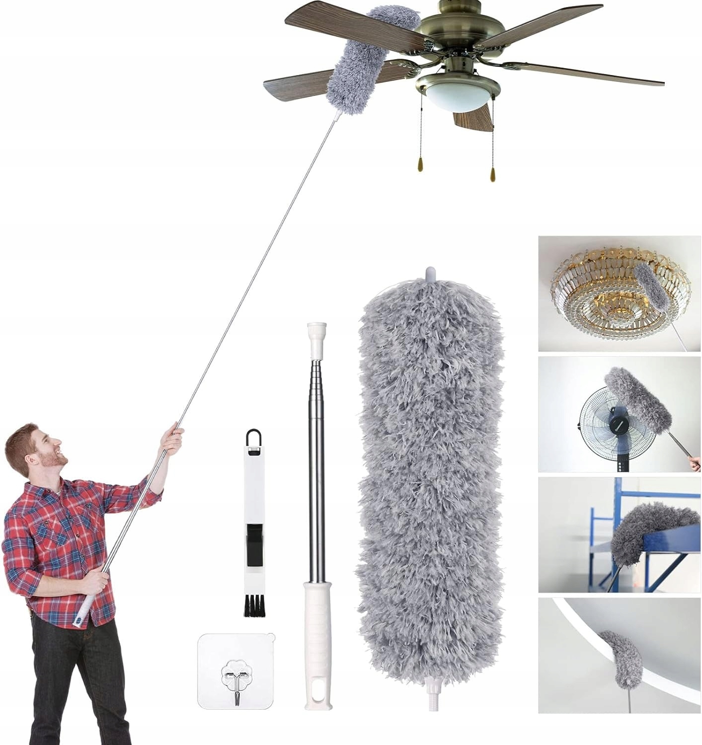 ✅ Выдвижная ручка: растягивающийся стержень из нержавеющей стали, телескопическая длина 73 см - 245 см. Для уборки не требуется лестница или стремянка. Легко очищаемые потолки, паутина, стены, потолочные вентиляторы и высокие светильники делают уборку более безопасной.