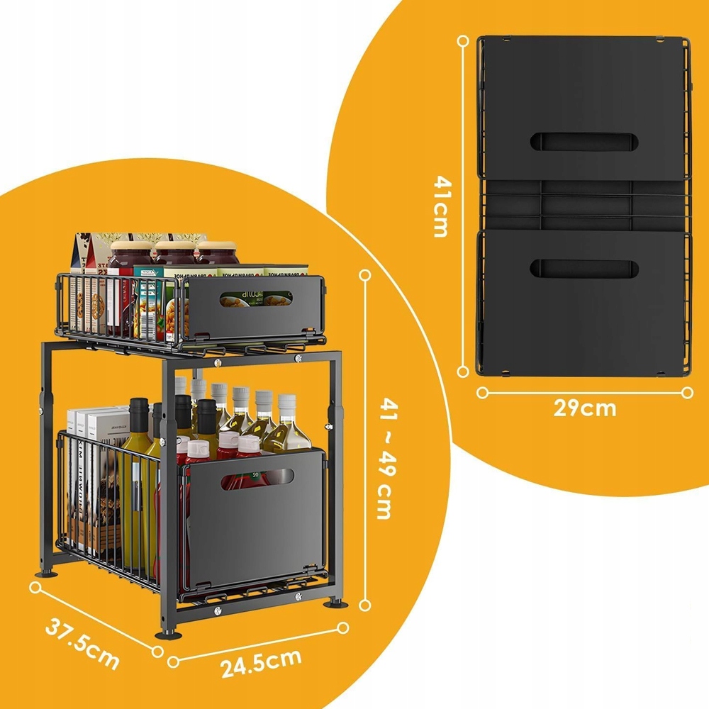 Этот кухонный органайзер практичен и позволяет регулировать высоту в диапазоне 41-49 см, поэтому вы можете идеально подогнать его под раковину или внутри шкафа. Размеры в сложенном виде: 29 х 37,5 х 41–49 см. Перед заказом измерьте размеры, чтобы обеспечить идеальную посадку.
