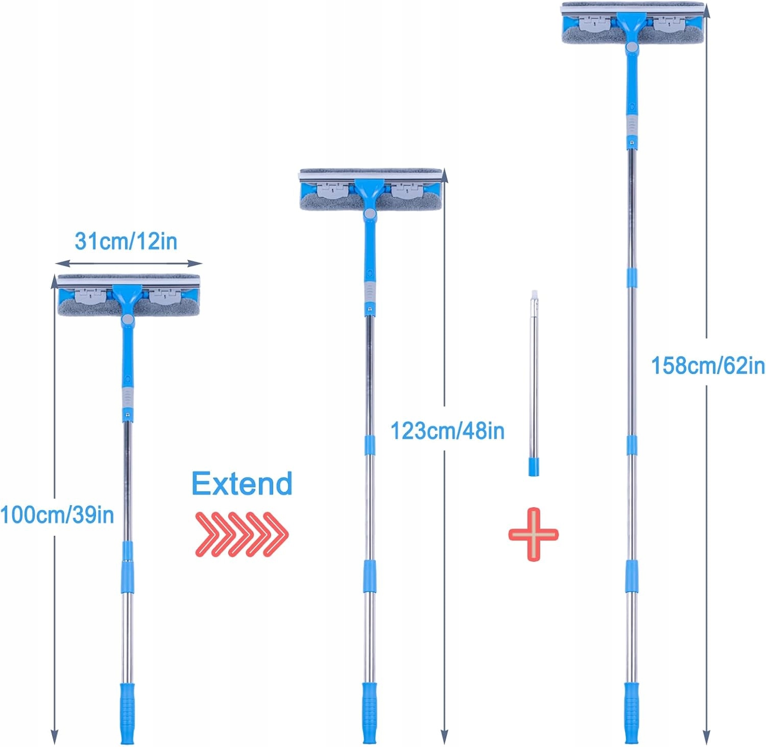 Телескопическая ручка : высококачественный стальный стержень может быть расширен до 158 см, что позволяет достичь высоких окон. Механизм скручивания позволяет легко тянуть и блокировать палку. Кроме того, Amazon доступен для еще более высоких окон.