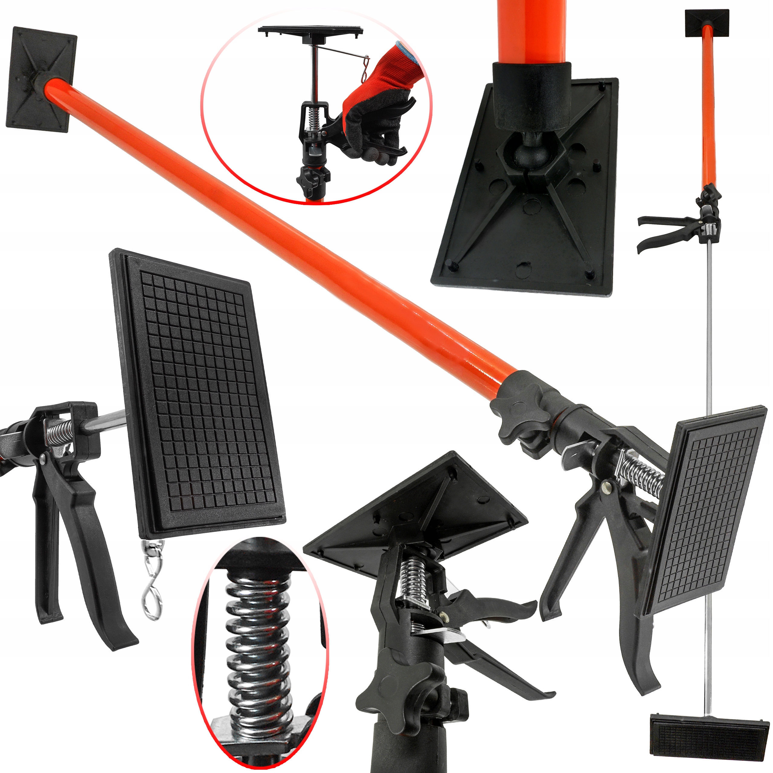 Телескопические опоры предназначены для временного крепления строительных и конструктивных элементов. Чаще всего используется для крепления гипсокартона или других плит во время монтажа и постоянного привинчивания, например, на потолках. Регулировка длины осуществляется в два этапа путем первоначального снятия с корпуса и фиксации пружинными штифтами, а также точного выдвижения и регулировки опоры с помощью кнопки рычага. Максимальная безопасная нагрузка – 30 кг. Рабочий диапазон 115-290см.