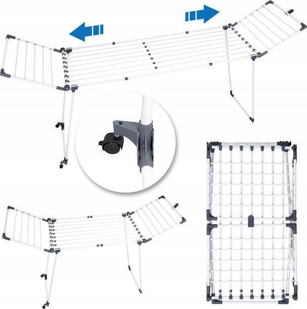 Благодаря соответствующим расстояниям между рядами , вода быстро испарится, и белье будет равномерно высушено и готово к складыванию!