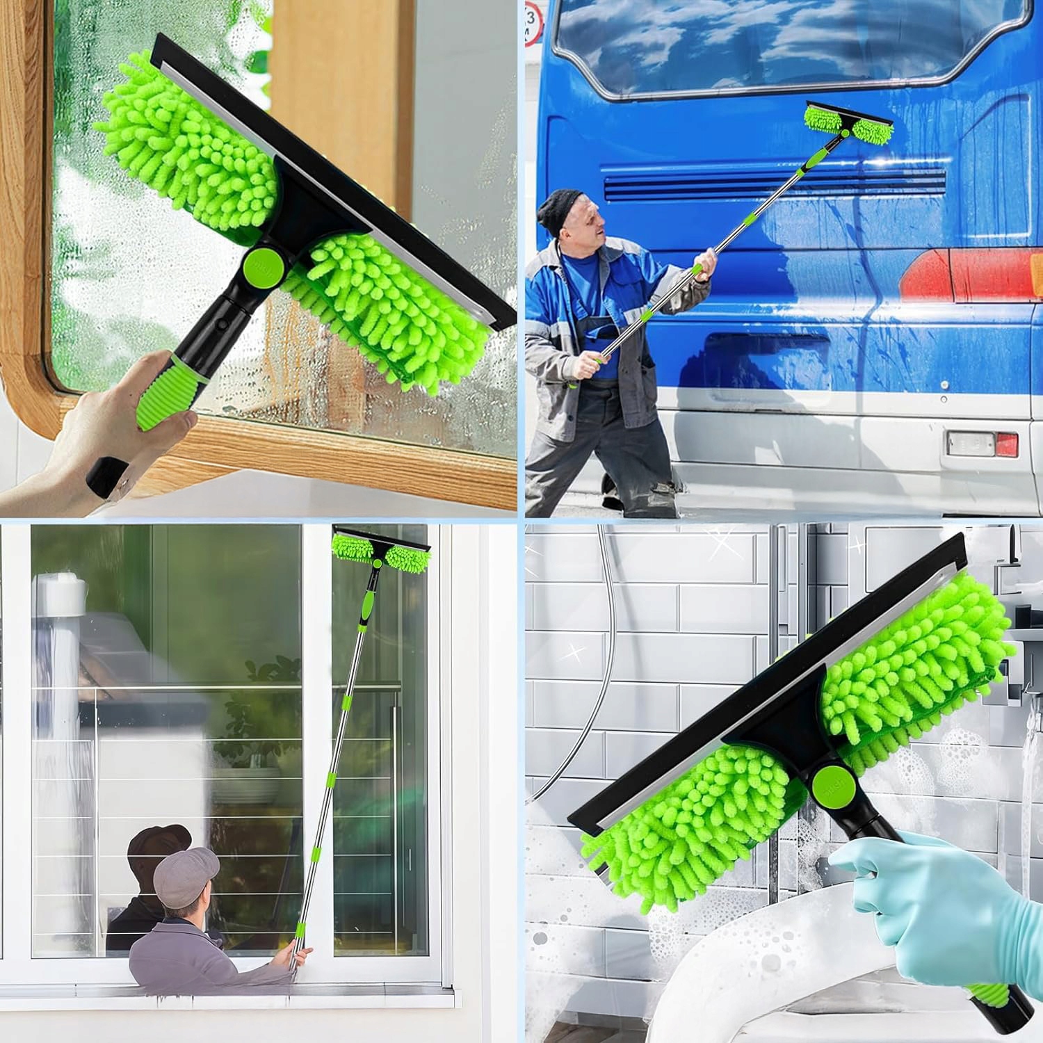 ⚜️⚜️ТЕЛЕСКОПИЧЕСКАЯ ЩЕТКА И ШВАБРА ДЛЯ МЫТЬЯ ПАНЕЛ ОКОН, АВТОМОБИЛЯ, СЕМЬИ 2 В 1 СЪЕМНАЯ МАШИННАЯ МОЮЩАЯСЯ ВЫСОКОКАЧЕСТВЕННАЯ ЗЕЛЕНАЯ⚜️⚜️